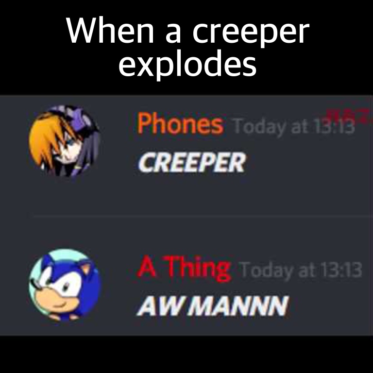 I’ll do this one, just a sec. Meme template: creeper aw man discord game