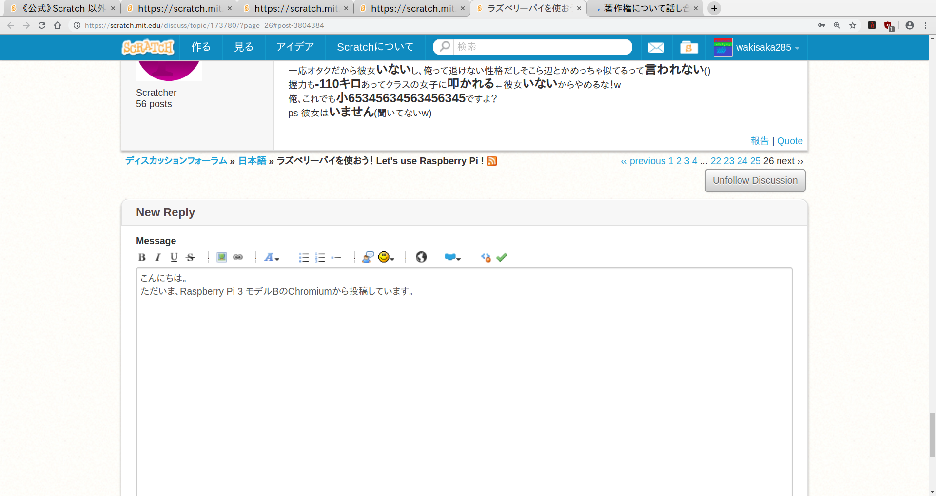 ただいま、Raspberry Pi 3 モデルBのChromiumから投稿しています。