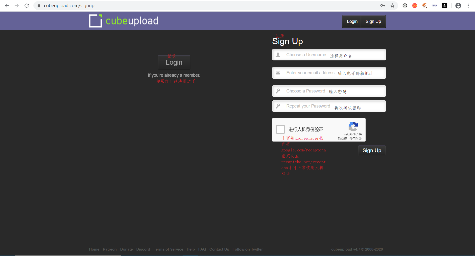 进入cubeupload并注册账号(可能需要挂梯子才能顺畅进入)