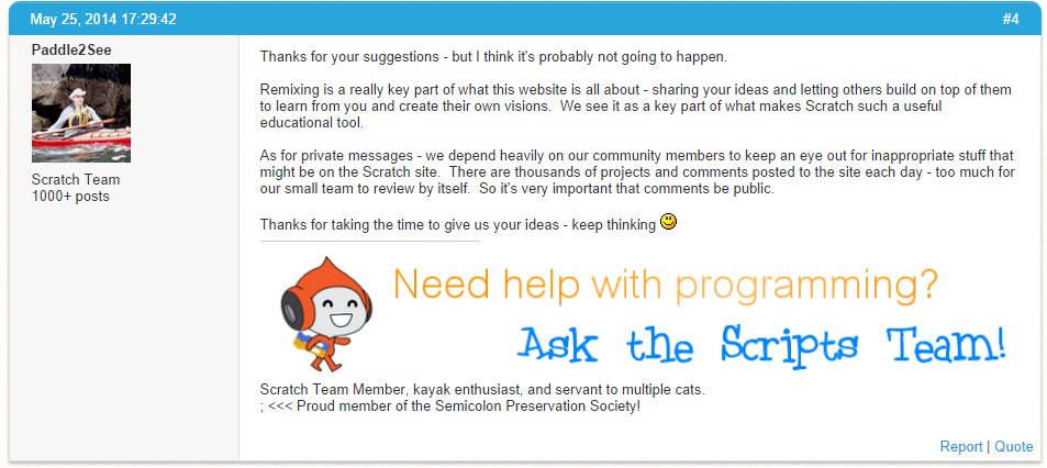 I'd be interested–but yeah, most people, even on a 3. Not necessary. I doubt most people are interested.programming-related website if Scratch is any example (okay, so maybe less on other websites, then), aren't really interested in learning more about that stuff.