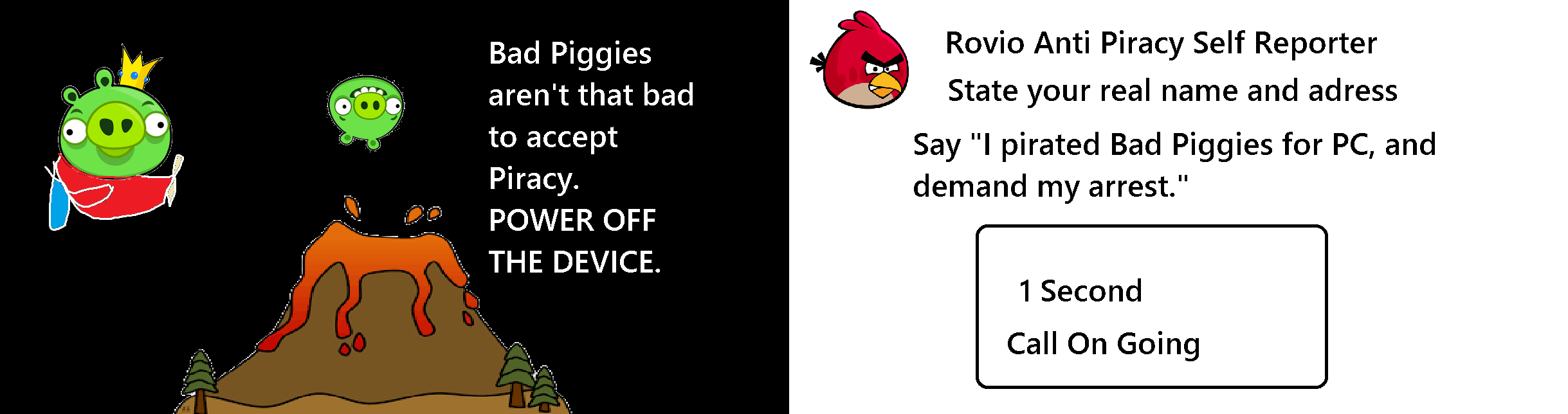 Thanks. I made a mockup of what would happen if you pirated bad piggies for the PC + Power Off Refusal.
