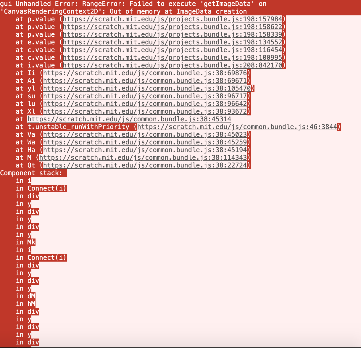 The reason for this error: This is an error about the resolution range. It failed to get the image data because the resolution is too high. It couldn't fully render the image. It is out of memory as the resolution is too immense.I am getting a different error: The crash is something about the canvas width.gui Unhandled Error: RangeError: Failed to execute ‘getImageData’ on ‘CanvasRenderingContext2D’: Out of memory at ImageData creation