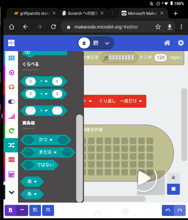 いつのバージョン…? 実際にmicro:bitにも<[真 v] ::#3b7960>というブロックが存在しますね。