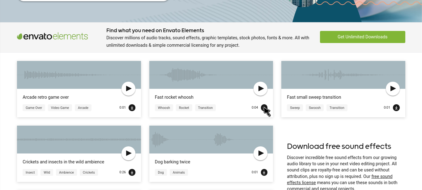 You can see my hand-drawn mouse on the download button next to the sound. This is on Mixkit.