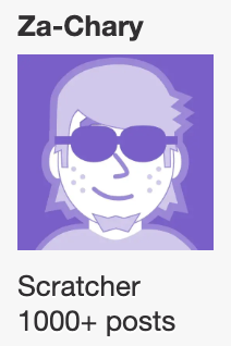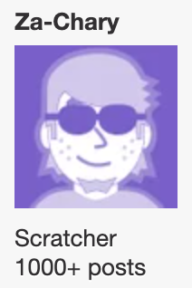 Can you show an example of your blurry pfp, and your current pfp as screenshots next to each other?Something that's not purple. It doesn't really matter what the image is, since the process should be the same for any image. I'm not having problems uploading a new profile picture — it's just that it's blurry. What's the profile picture you want to have now?That's what I did and it didn't seem to work — I initially screenshot it to 720x720 and resized it to 500x500. The profile picture can upload, but then it's blurry. You could try tracing it in the vector editor (If you think it's went a bit rusty on the quality beforehand), right-click, ‘save as image’, now go to ezgif and crop the image to a size Scratch accepts, just make sure you don't size it too big.