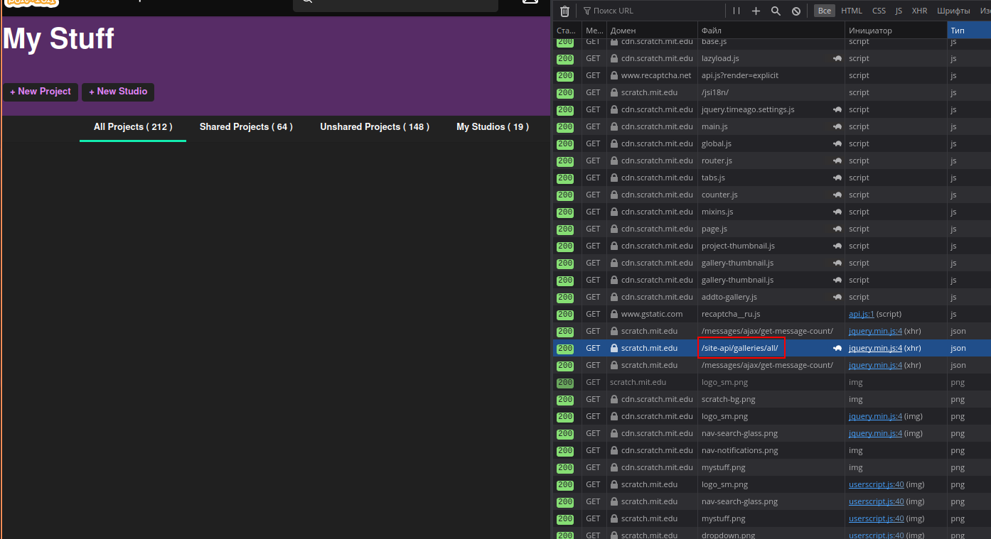 It looks like ST changed the api URL to fetch the studios instead of projects for some reason. This is potentially the reason why only the page with projects fails to load