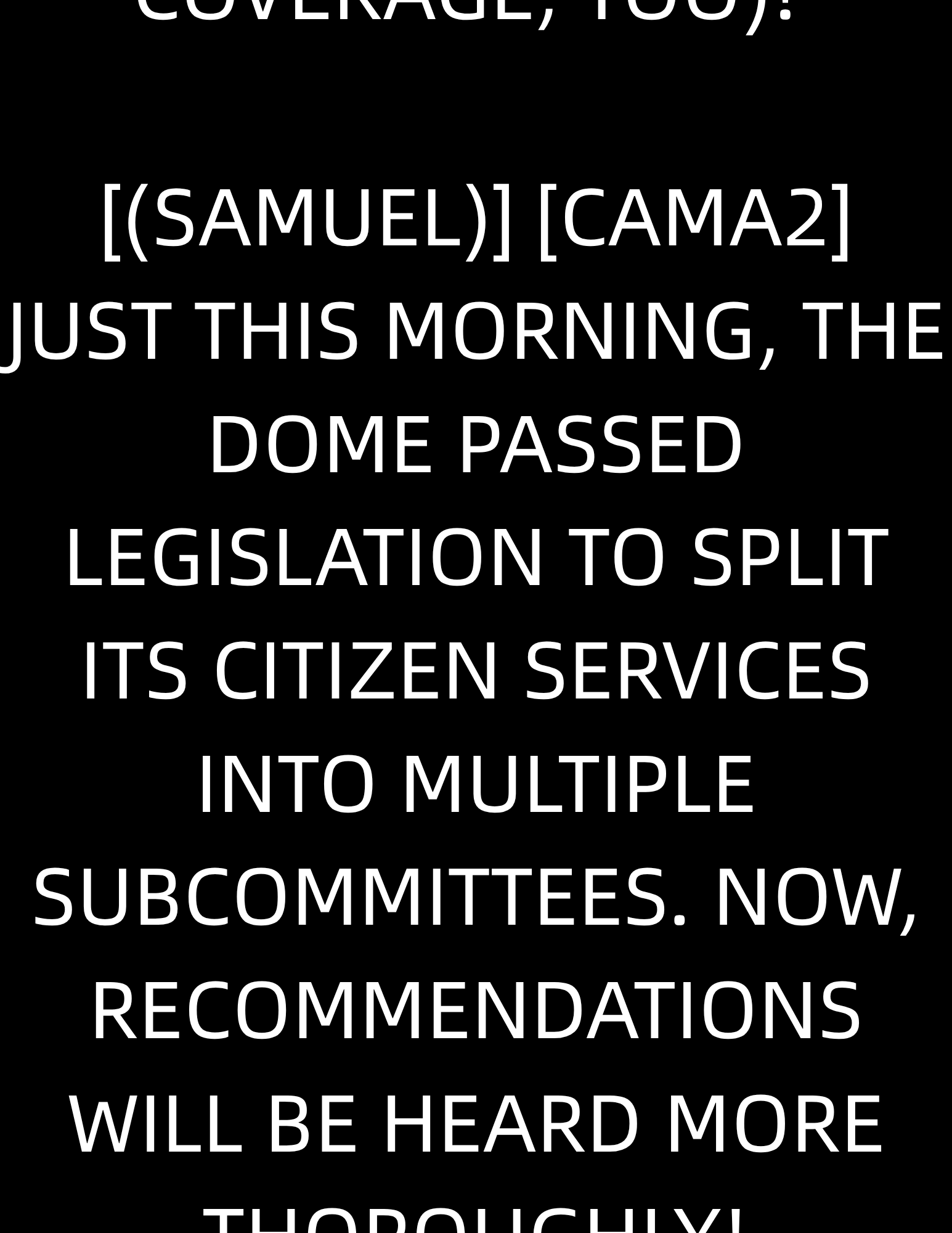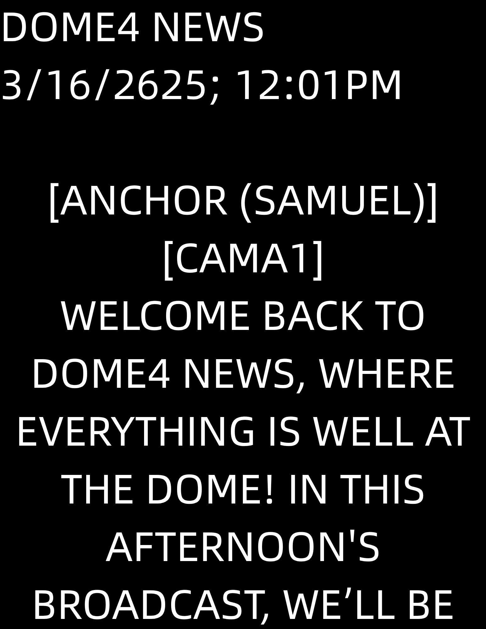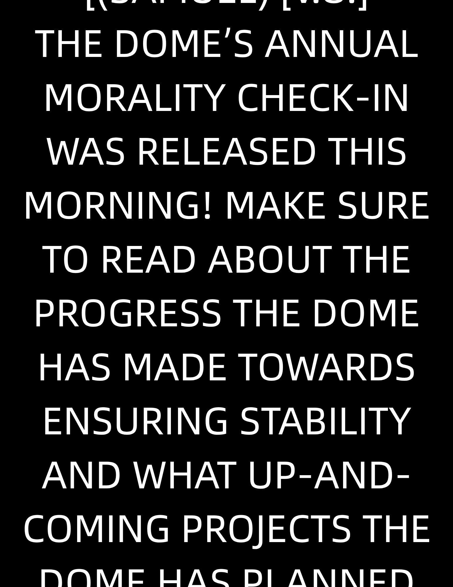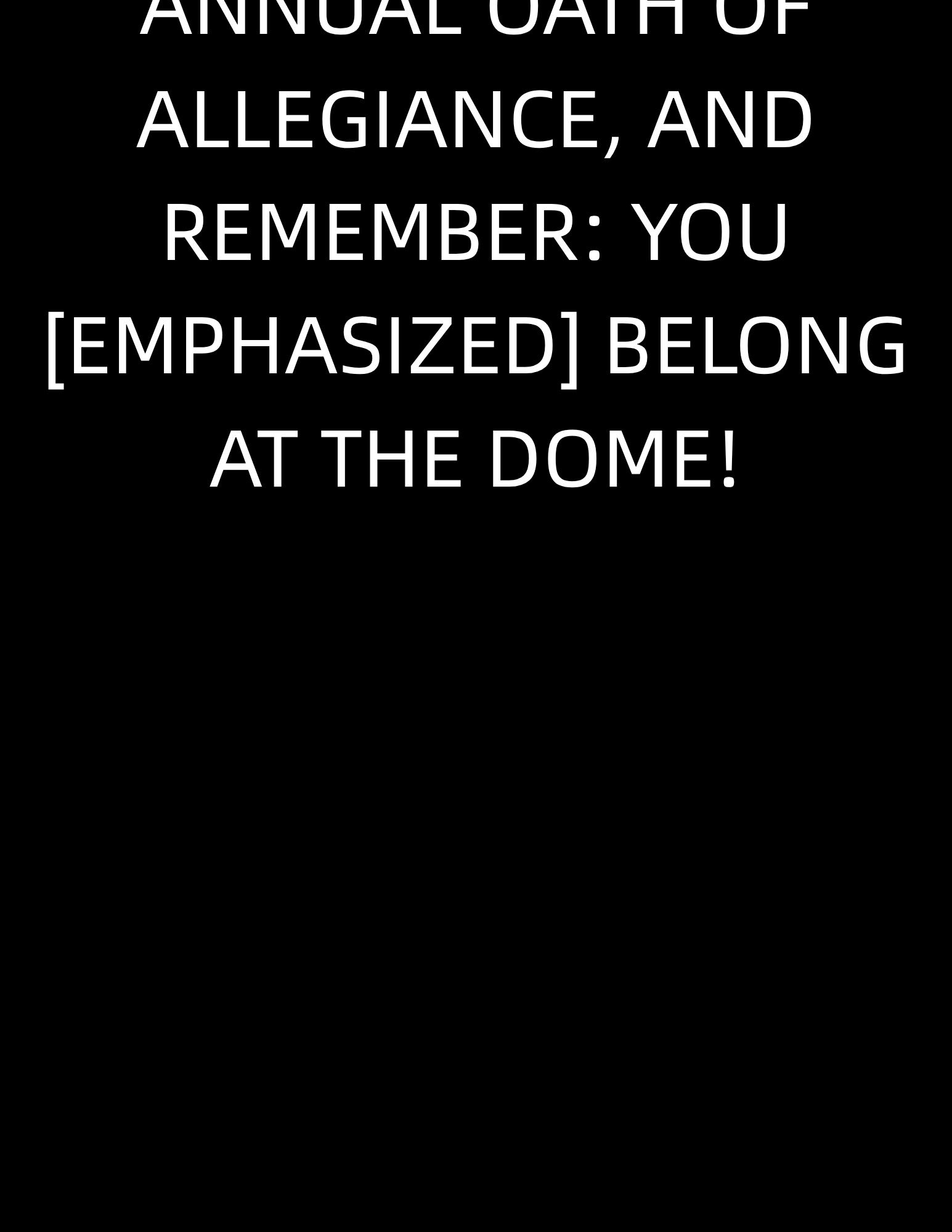 special thanks to inky, alana, livy, and toko for offering useful feedback to the dome's operations – they have been taken care of :). the dome welcomes all critiques of their system; if you have any feedback, schedule an interrogation meeting with an executive at the dome. you TOO belong at the dome!!