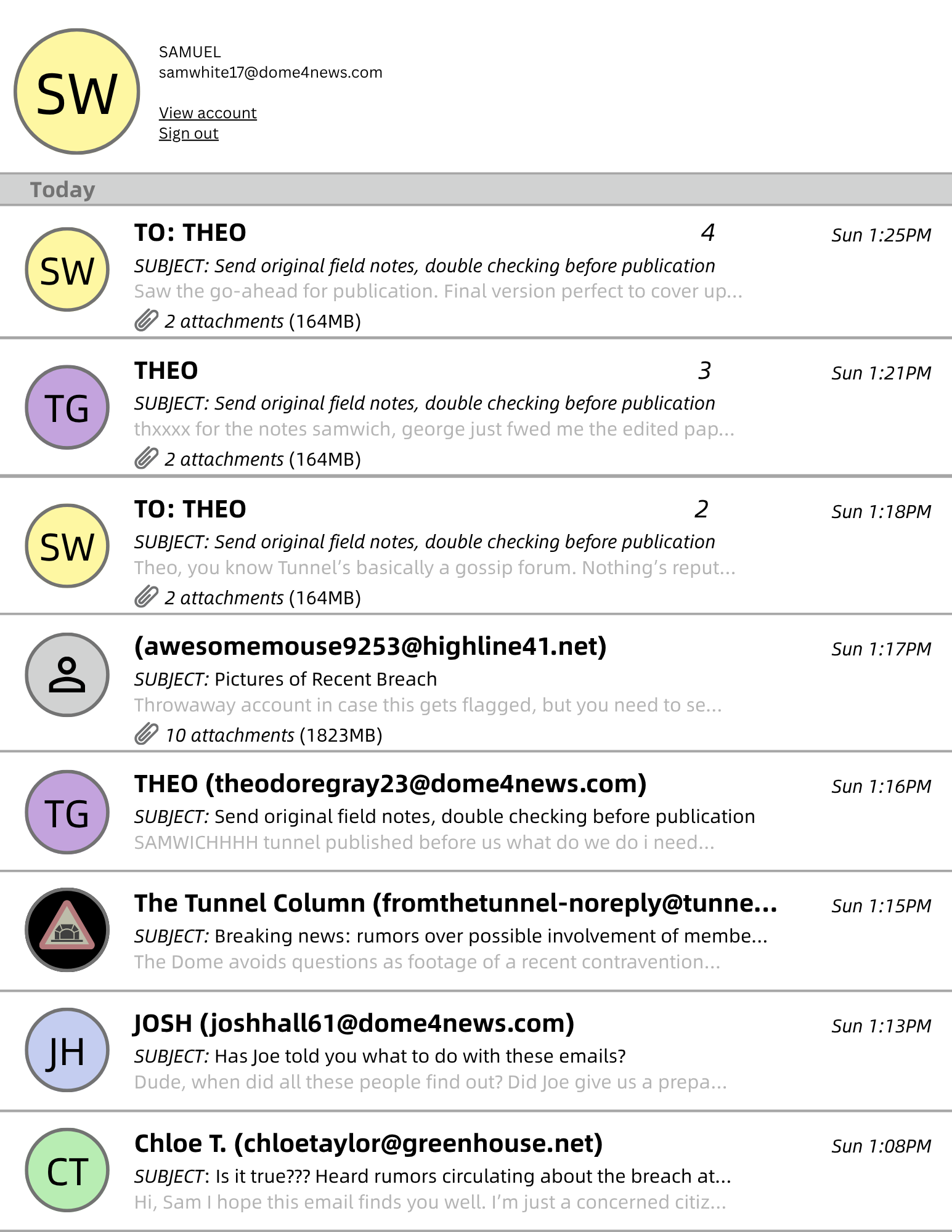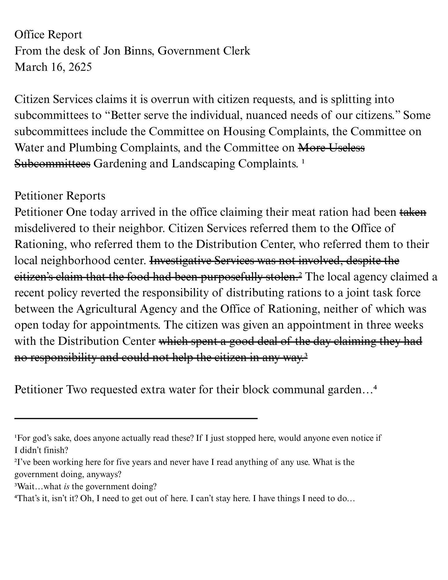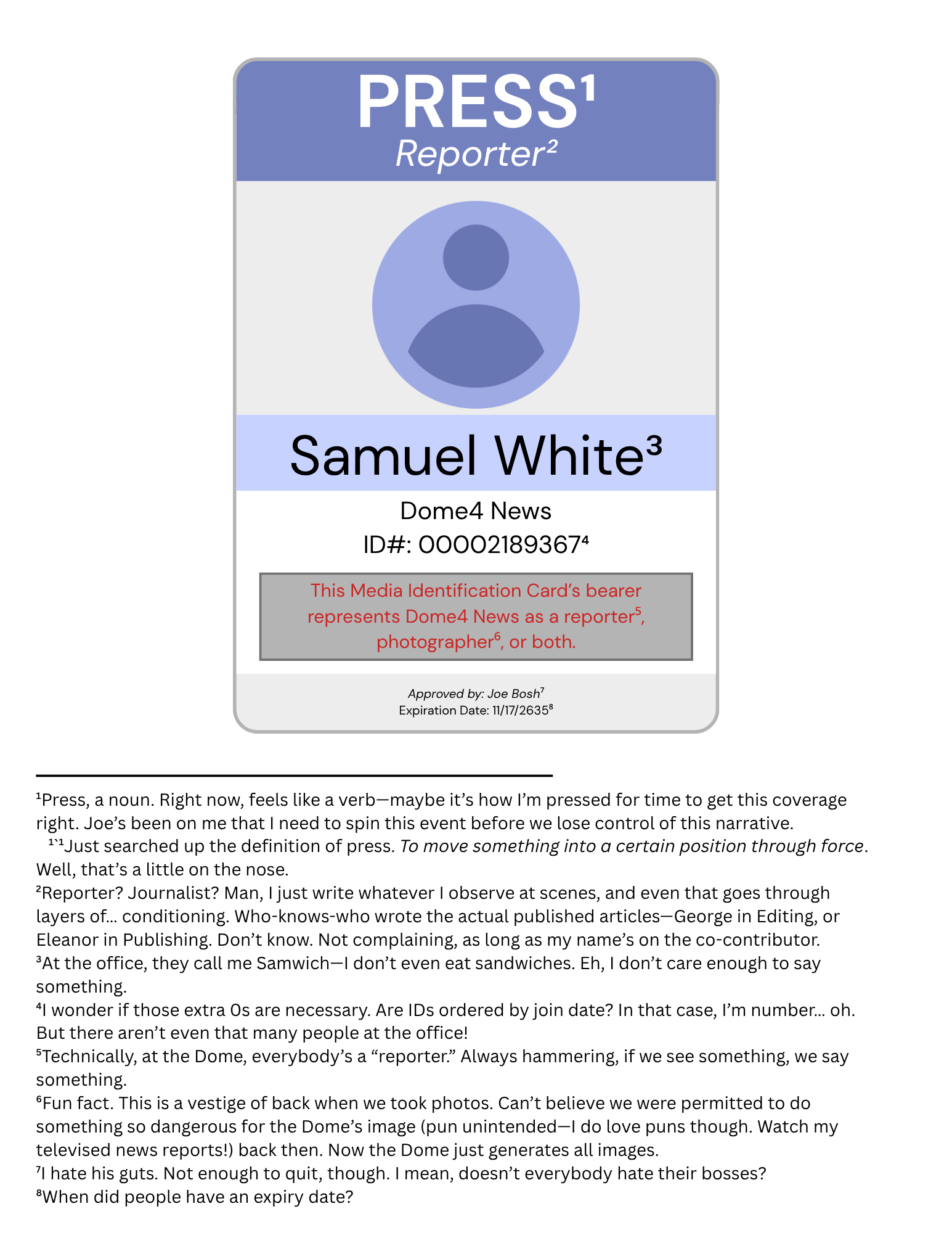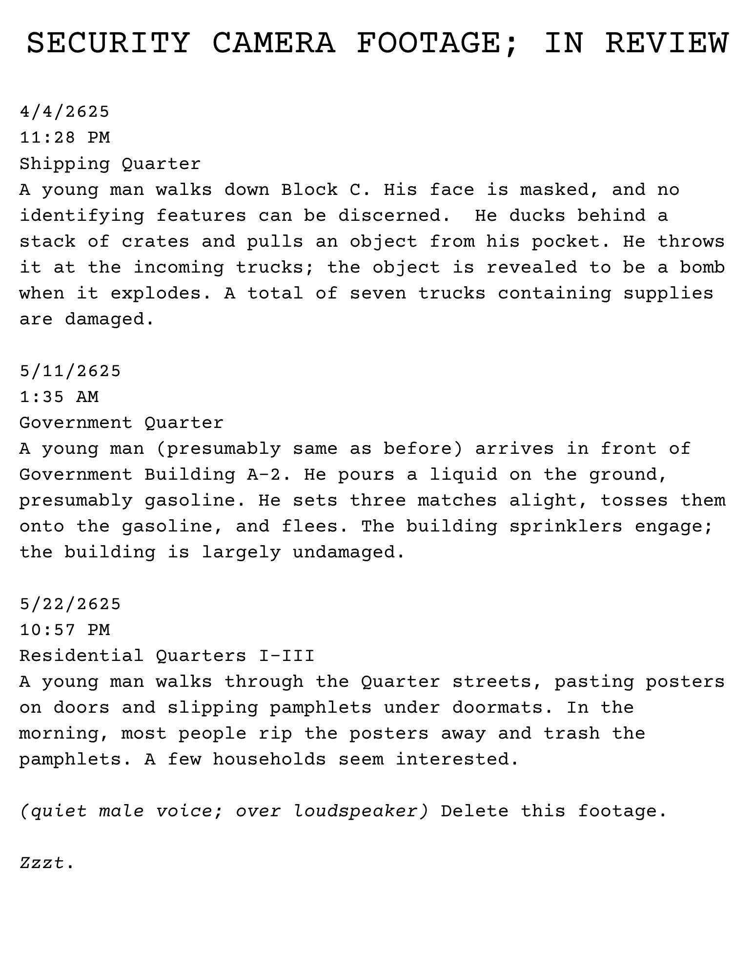 a/n (written by Alia): A little bit of background on our piece! Funnily enough, this piece was inspired by a saying from one of our schools - we were joking about writing a piece based on it, and then were like …wait. What if? From there, we created this dystopian-esque world, inspired by elements of the Wizard of Oz, the fifth substory in the Cloud Atlas, and 2000s dystopian novels. This story is written in a style called hermit-crab fiction, which is essentially a piece composed of multimedia, or a story told through other forms of written media (in our case, emails, transcripts, and footnotes, to name a few). We really wanted to step outside of our comfort zones with this, and try something neither of us has really attempted - something that wasn’t character/emotion focused for Alia, something without description or poetical writing for Zai - and of course, neither of us is deeply experienced in hermit crab fiction, nor have we submitted anything in this style. This piece was so much fun to write, and we hope you love it as much as we do <3