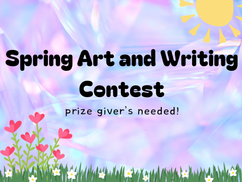 Any Text or Details?: It should say “Spring Art & Writing contest” in big bubble letters then farther down say “Prize giver's needed!”