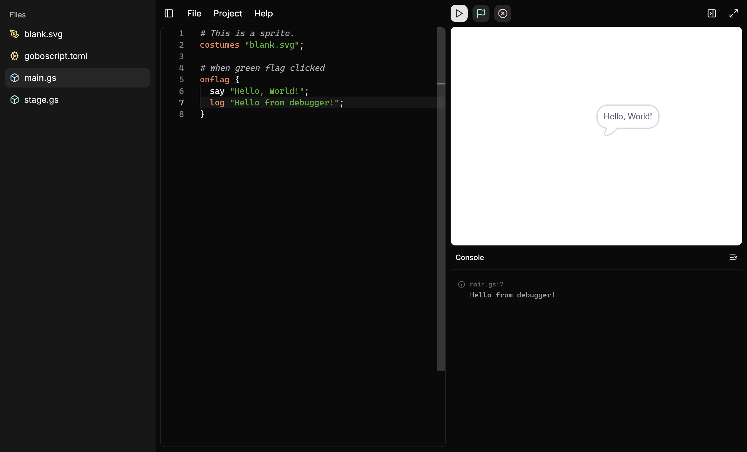 I'm adding an interpreter to goboscript, so you can directly run scripts written in goboscript.
