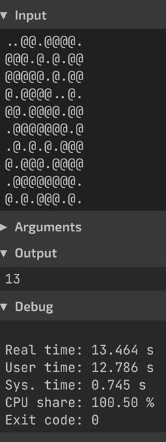 It would also take too long to calculate. 13 seconds for the example? No way this can do my input for less than 60 seconds (the limit)