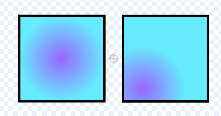 中央に向かって色が変わるグラデーションを使った際、そのグラデーションの色のまま「塗りつぶし」でそのグラデーションを適用した図形などをクリックすると、クリックした場所に向かって色が変わる。