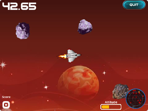 In the single-player game, you have to shoot the asteroids to score points. You can also shoot the alien ship to increase the time available, but if the alien shoots you, your score goes down.