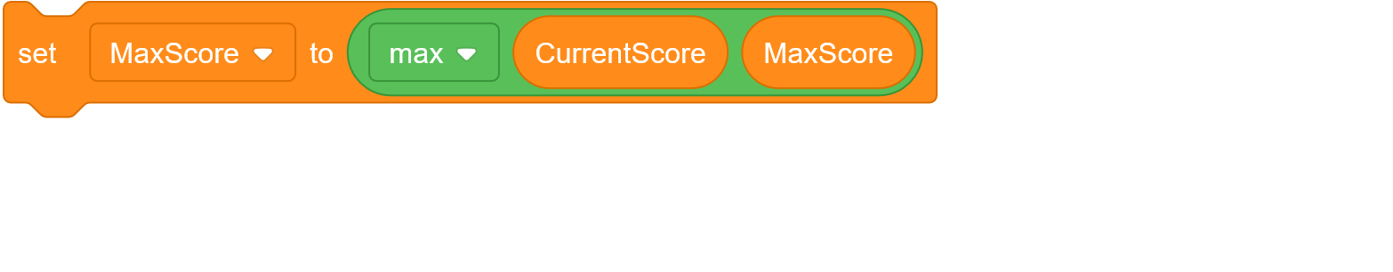 This would turn something that takes a if statement and a > operator and a set variable to just a set variable and max. To a new scratcher, this may make more sense. Because if the max score is higher than your current score, it will just set it back to the max score. If the current score is higher, it sets the max score to the higher value(current score).