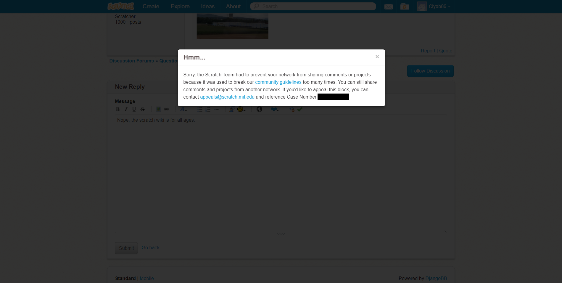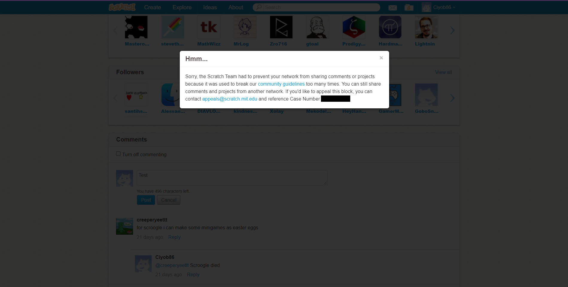 When I logged into scratch and tried to answer a question in the QaS forum I got a prompt saying that I had been blocked for breaking the community guidelines too many times despite never getting any alerts. I decided to work on some projects. A few minutes later my project wasn't able to save and I was logged out for no apparent reason. I logged back into scratch and I found out the block on my account was removed.