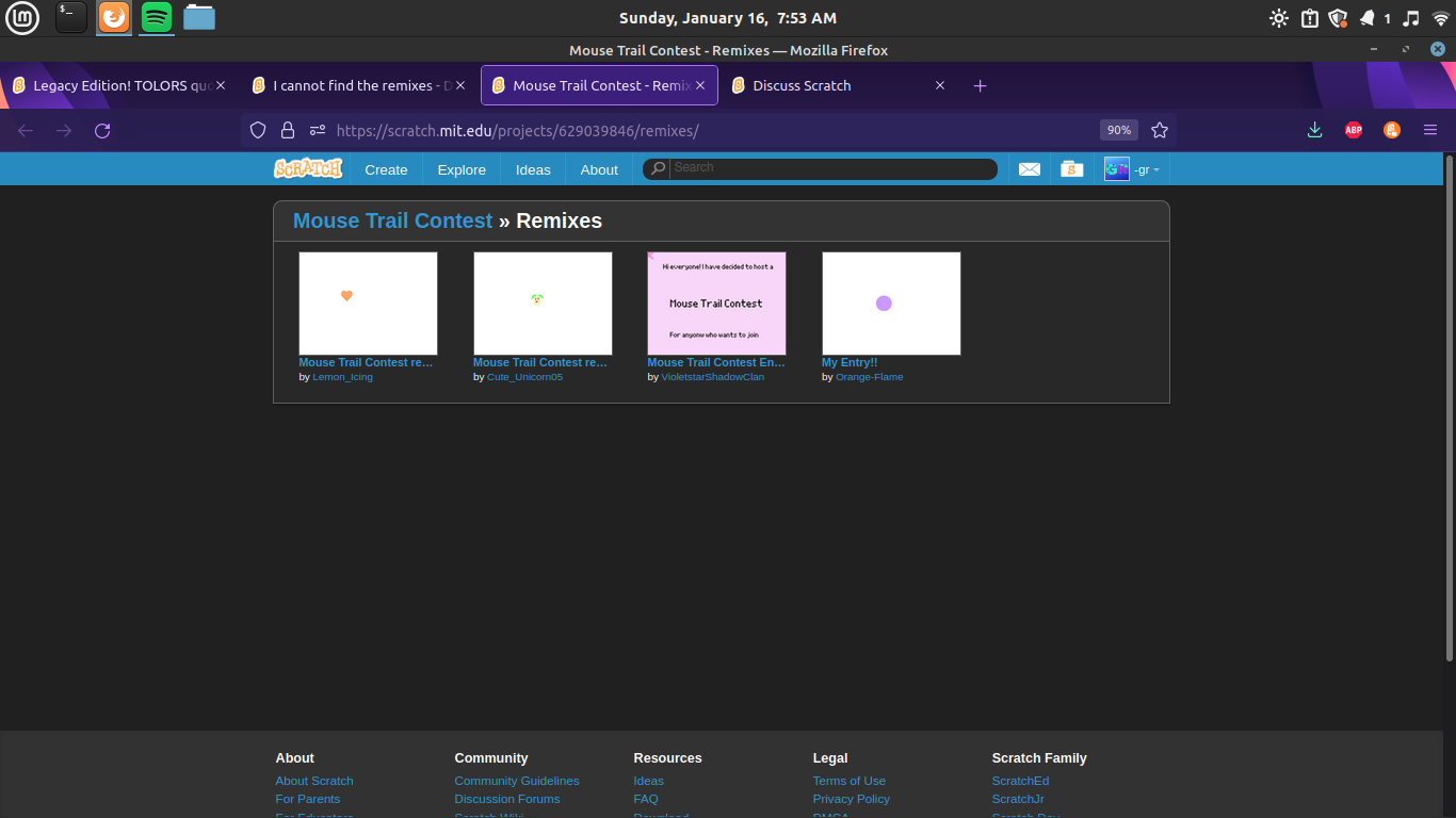 It only shows up with 4 projects. I want to know if it works with anyone else. https://scratch.mit.edu/projects/629039846/remixes/