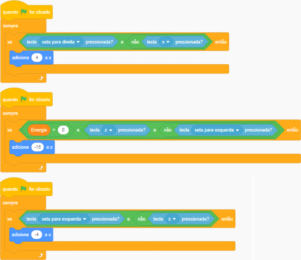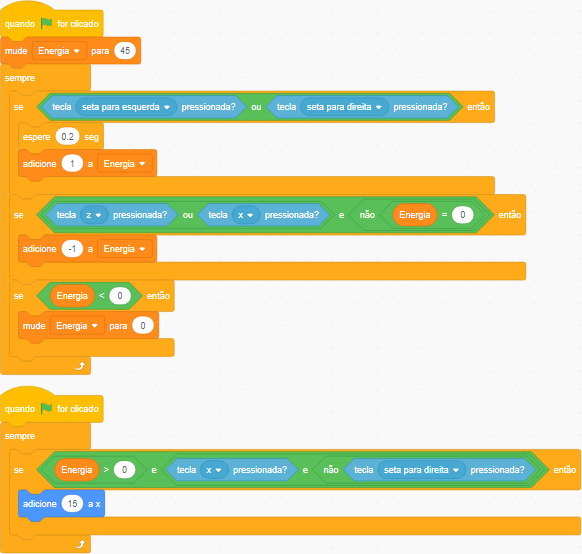 se <<(Energia :: variables) > (44) :: operators> e <tecla [espaço v] pressionada? :: sensing> :: operators> então{