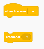 If you name a broadcast as it, then place a receive broadcast block with and place a broadcast block with then go into backdrops, then back into your selected sprite, you have a blank broadcast