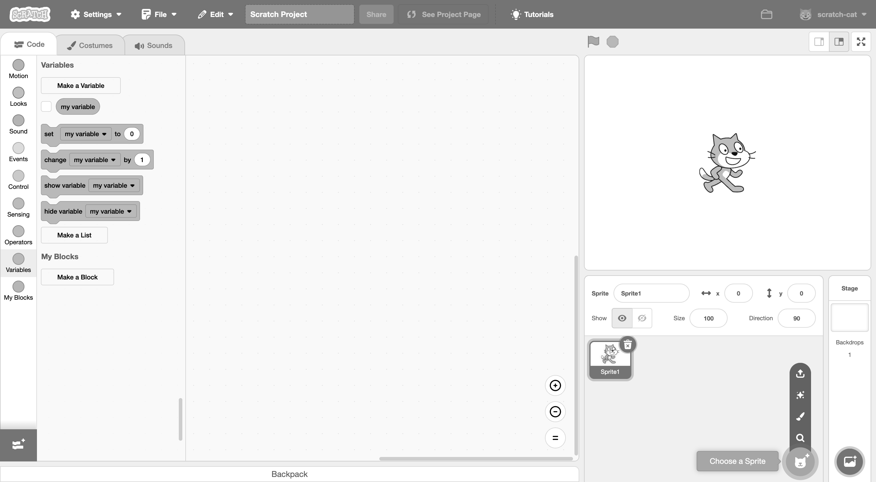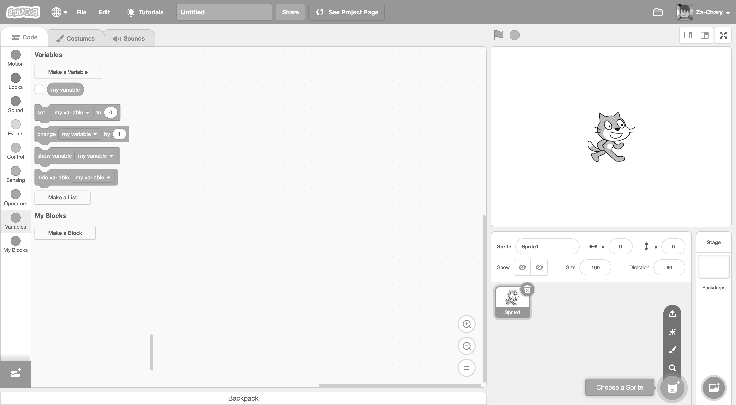 We could also check out the changes for ourselves. The first two images below show the Scratch editor with the original blue and the new purple, respectively. The last two images are the exact same but in complete grayscale (saturation turned all the way down). Undeniably, the purple has higher contrast, which was the Scratch Team's goal in making this update. The purple was likely chosen as opposed to, say, making the blue darker, because it was more “on brand” as a color theme for Scratch, and the purple in Scratch Lab was already used, so it was not a huge shift.