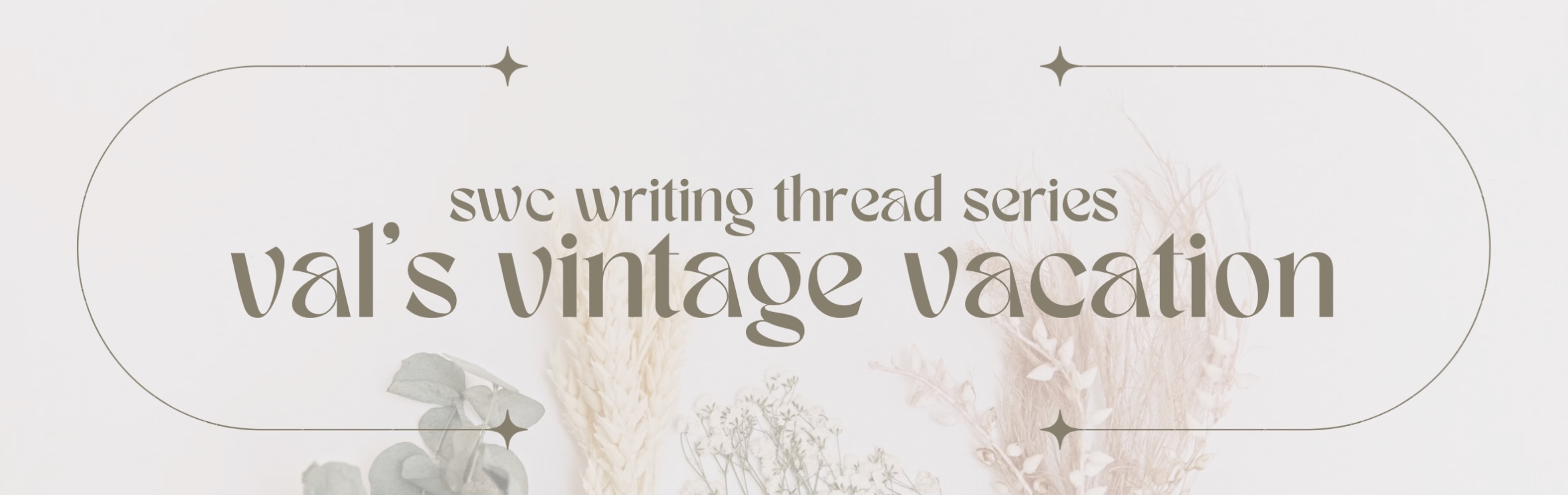 First Session (Nov '22):ᴠᴀʟ'ꜱ ᴠɪɴᴛᴀɢᴇ ᴠᴀᴄᴀᴛɪᴏɴ ɪꜱ ᴀ ʀᴜɴɴɪɴɢ ᴛʜʀᴇᴀᴅ ꜱᴇʀɪᴇꜱ ꜰᴏʀ ᴠᴀʟ (@ᴘʜᴏɴʏᴏᴏᴏᴘꜱ)'ꜱ ꜱᴡᴄ ᴡʀɪᴛɪɴɢ ꜱᴇꜱꜱɪᴏɴꜱ! ᴛʜᴇ ᴠᴇʀʏ ꜰɪʀꜱᴛ ᴛʜʀᴇᴀᴅ ᴡᴀꜱ ᴏɴ ꜱᴡᴄ'ꜱ ɴᴏᴠᴇᴍʙᴇʀ 2022 ꜱᴇꜱꜱɪᴏɴ, ᴀɴᴅ ᴀꜰᴛᴇʀ ᴍᴜᴄʜ ᴛʜᴏᴜɢʜᴛ, ᴅᴇᴄɪᴅᴇᴅ ᴛᴏ ᴄᴏɴᴛɪɴᴜᴇ ᴛʜɪꜱ ᴡɪᴛʜ ᴛʜᴇ ꜱᴀᴍᴇ ɴᴀᴍᴇ.