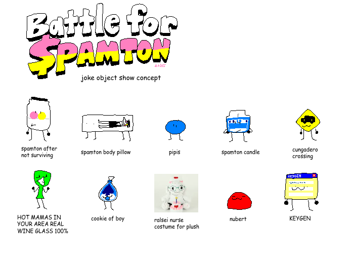 approvalAHHH THAT'S SO COOL ACTUALLYback home and can access cubeupload again heres my bug collectionclose enough lol. the contestants are various spamton-adjacent objects (mostly sweepstakes prizes but there are some silly ones too) and the host is spamton a. spamtonthat reminds me, ive been keeping an idea floating around in my head for a while thats literally just spamton sweepstakes as an object show. battle for spamton chat we need a deltarune object show