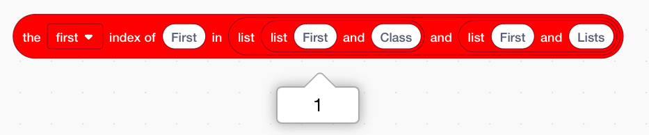 The(list [a] and [b] :: list)Block returns a first class list with the items specified, if you want more than 2 items do(list [a] and (list [b] and [c] :: list) :: list)This returns a list containing a,b,c(item (1) of (\ \ \:: #590101):: list)Returns the item number specified of the first class list of the second input(The [first v] index of [thing] in (\ \ \:: #590101)::list)Returns the item number of the first or last item that is the same as the provided string