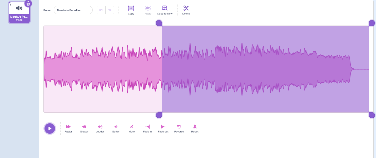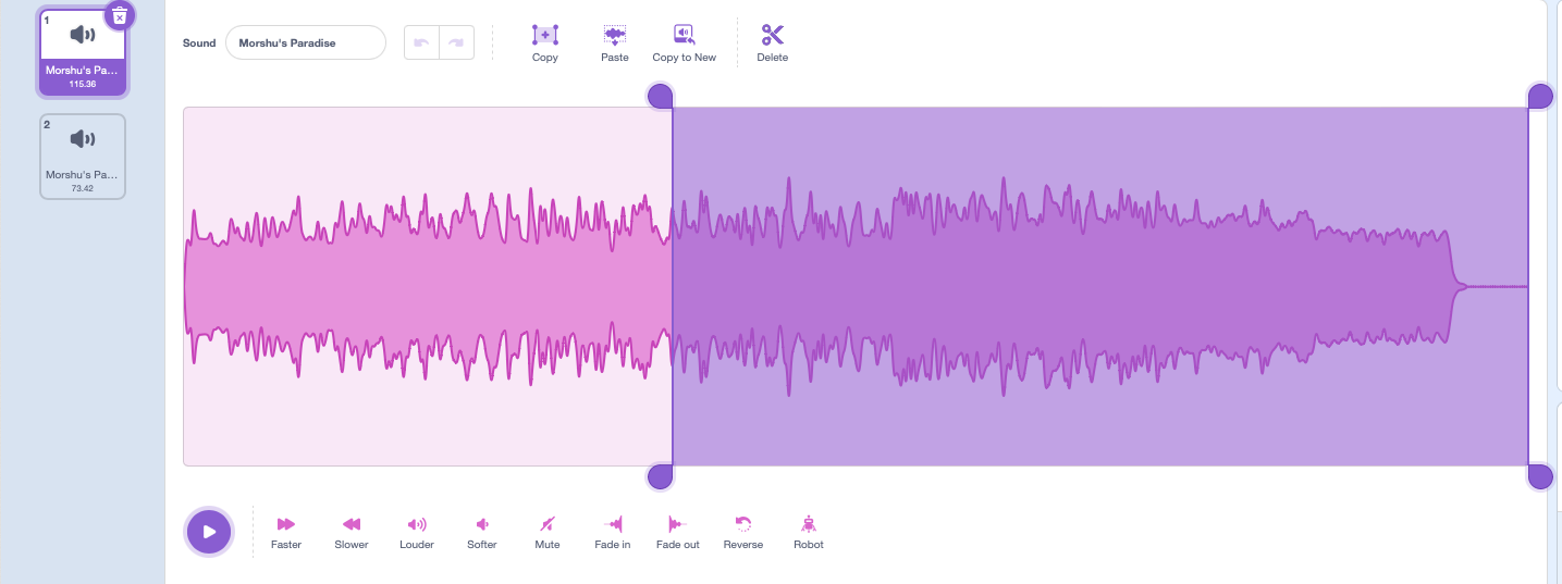 s1. Upload the audio.2. Select half the audio.3. Without deselecting the region, click “copy to new”.4. If your selected region looks like the one above, click “delete”.You now have two audio files, which are the first and last parts of the song. Playing them one after another should play the whole song.If it does not save, repeat this process until it does.
