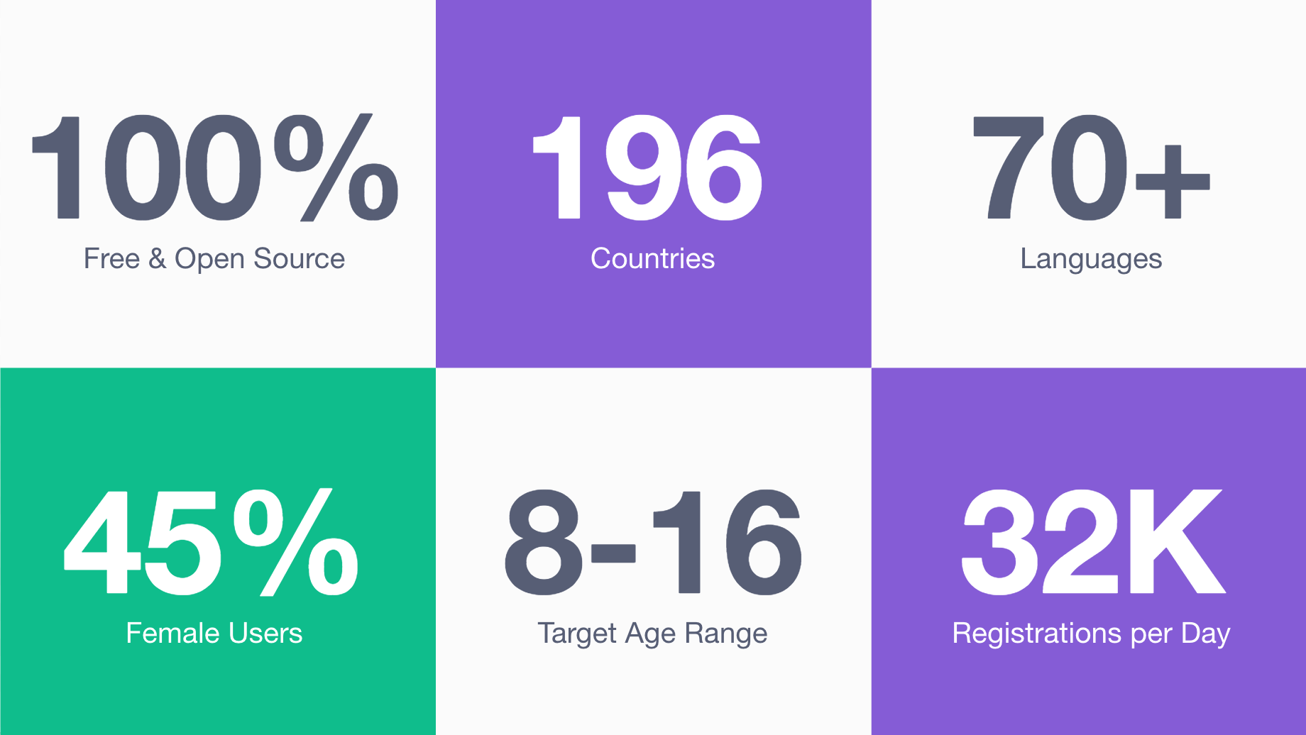 The statistic that it is 100% open source is not true. Scratch is only partially open source. This graphic is misleading and false.