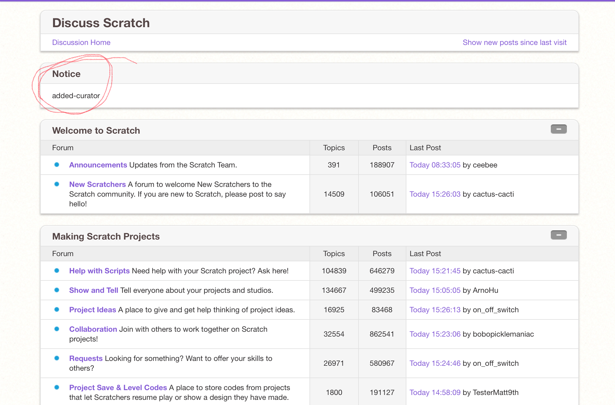 Soooooo I opened discussion forums, and it said “Notice: added-curator” what does this mean?
