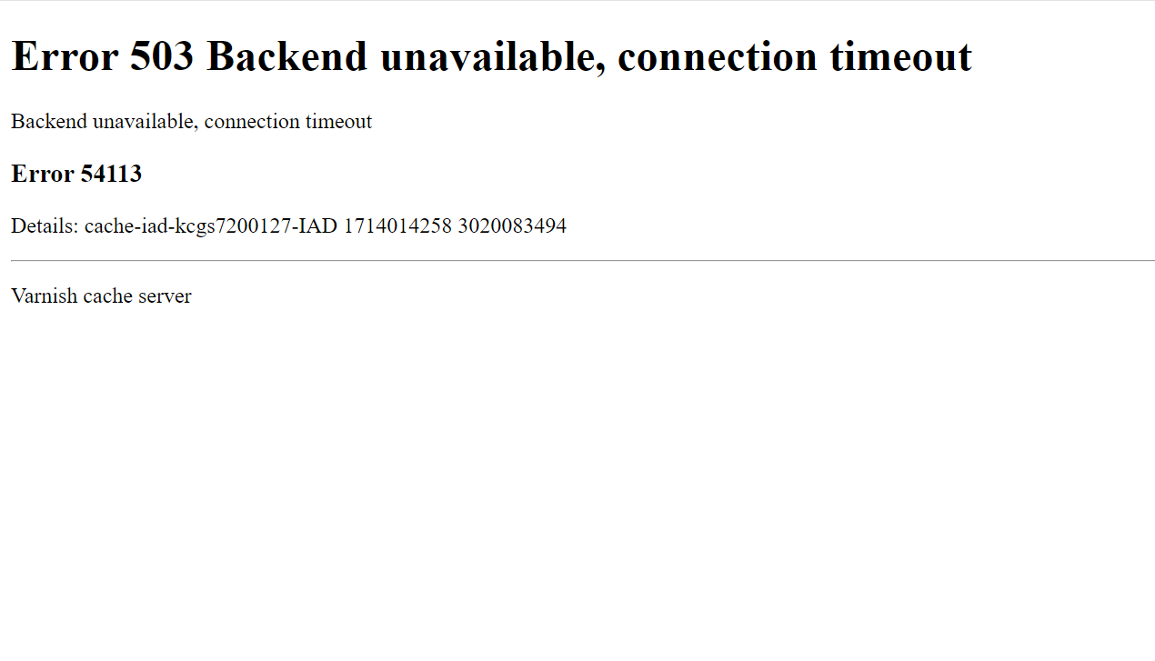 Seems to be a problem with it loading “jquery.min.js”, from checking the network section in chrome devtools. It fails with error 503