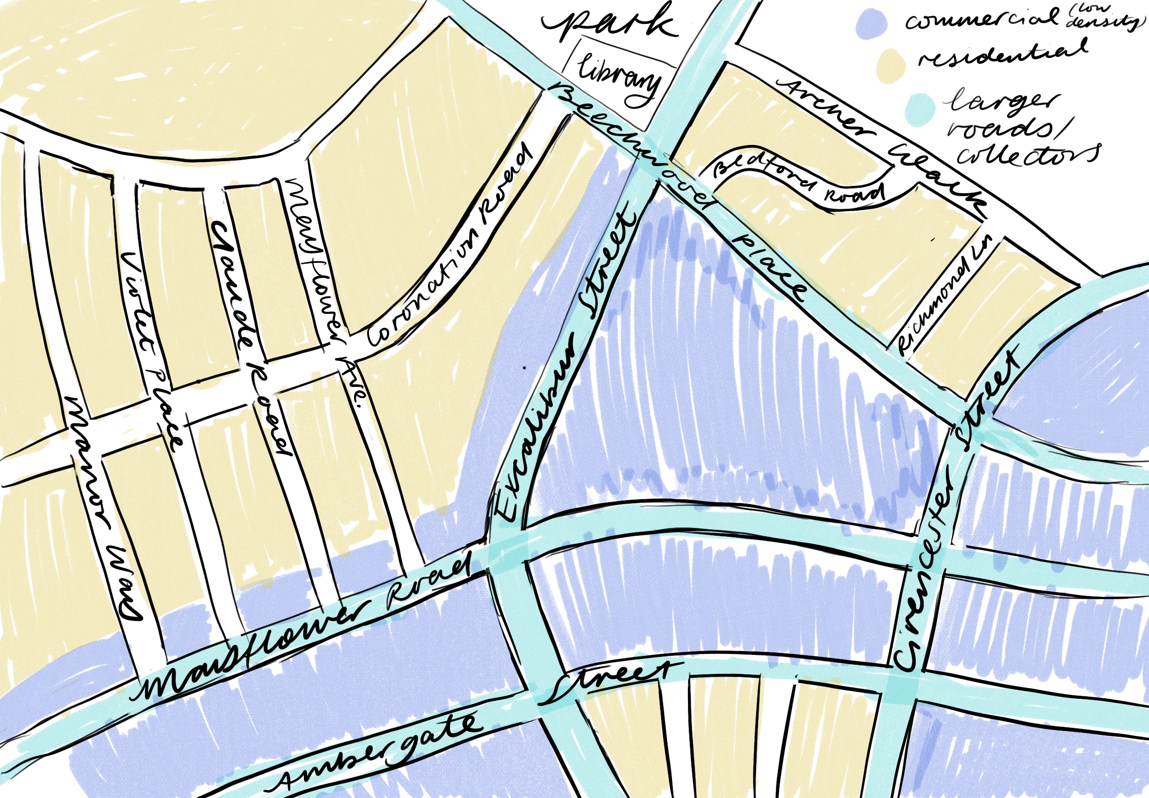 The main hospital building takes up a significant amount of space, with a nearby parking lot (of course). Surrounding the main hospital building are some lovely green spaces, for both staff and patients.
