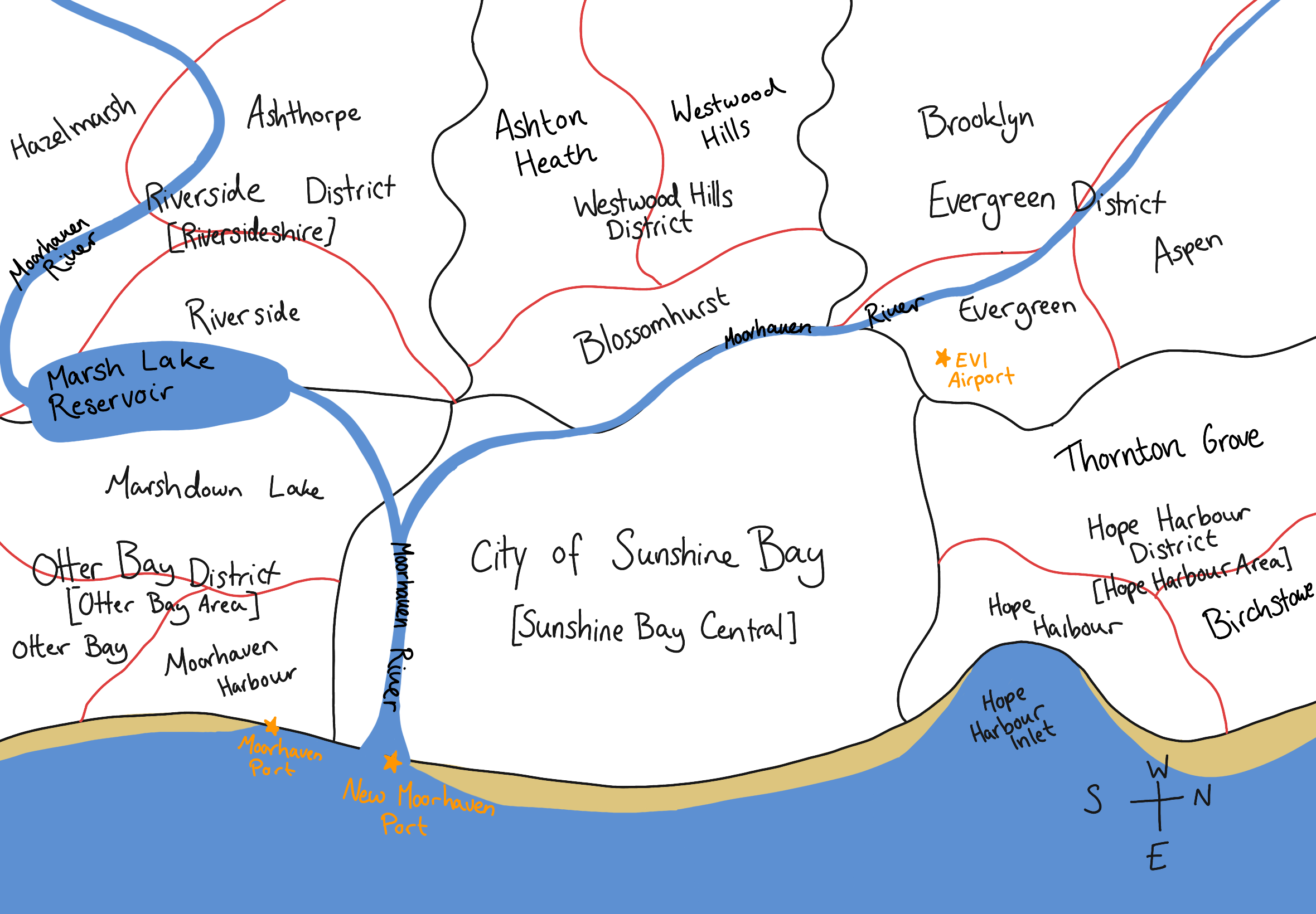 This is a forumised version of the world info for Sunshine Bay City, a roleplay that started out on Scratch that has since become a worldbuilding passion project for myself, Skylar, and Hope (euphoriafall). The main project full of info exists here, however the project may be unable to run or crash older/slower systems, so this forum was made in the intrests of accessibility.