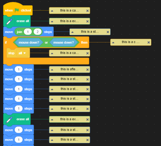 I guess the list needs some explaining too. Currently I am implementing comments, and attaching them to blocks. The reason Extension_stack is listed there is because for some reason the extension blocks are slightly bigger than normal ones (pen extension stack blocks at least).