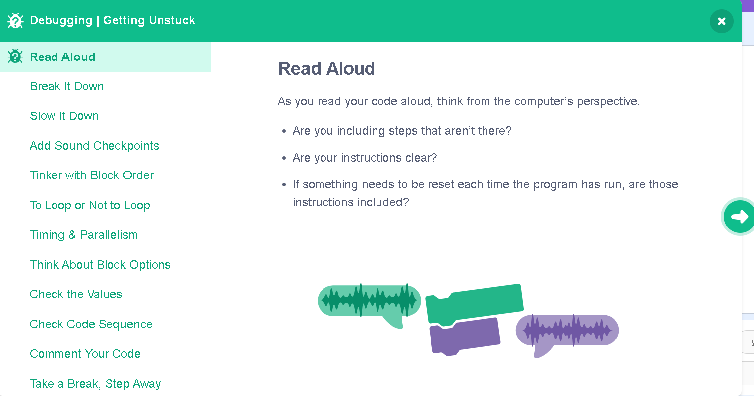It should be called “help” or “get help” and not “debug” because it may confuse scratchers when they move on to programming languages with real debug features into thinking they’re useless