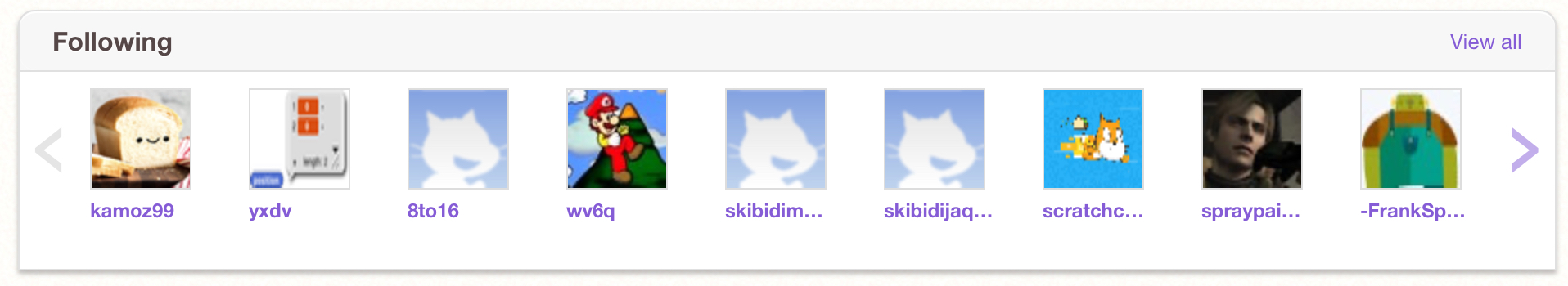 I think the order was just reversed, not the order when they joined Scratch. It used to be listed from left to right as most recently followed to oldest followed, but now it's oldest followed to newest. However, when you click the “view all” button, it's listed from newest to oldest. I'm not sure why this is occurring though.No no no, I don’t think you understand what I’m saying about the following list in the profile page being sorted in the order of when the user joined scratch. This is what I meant, I’m trying to elaborate here: