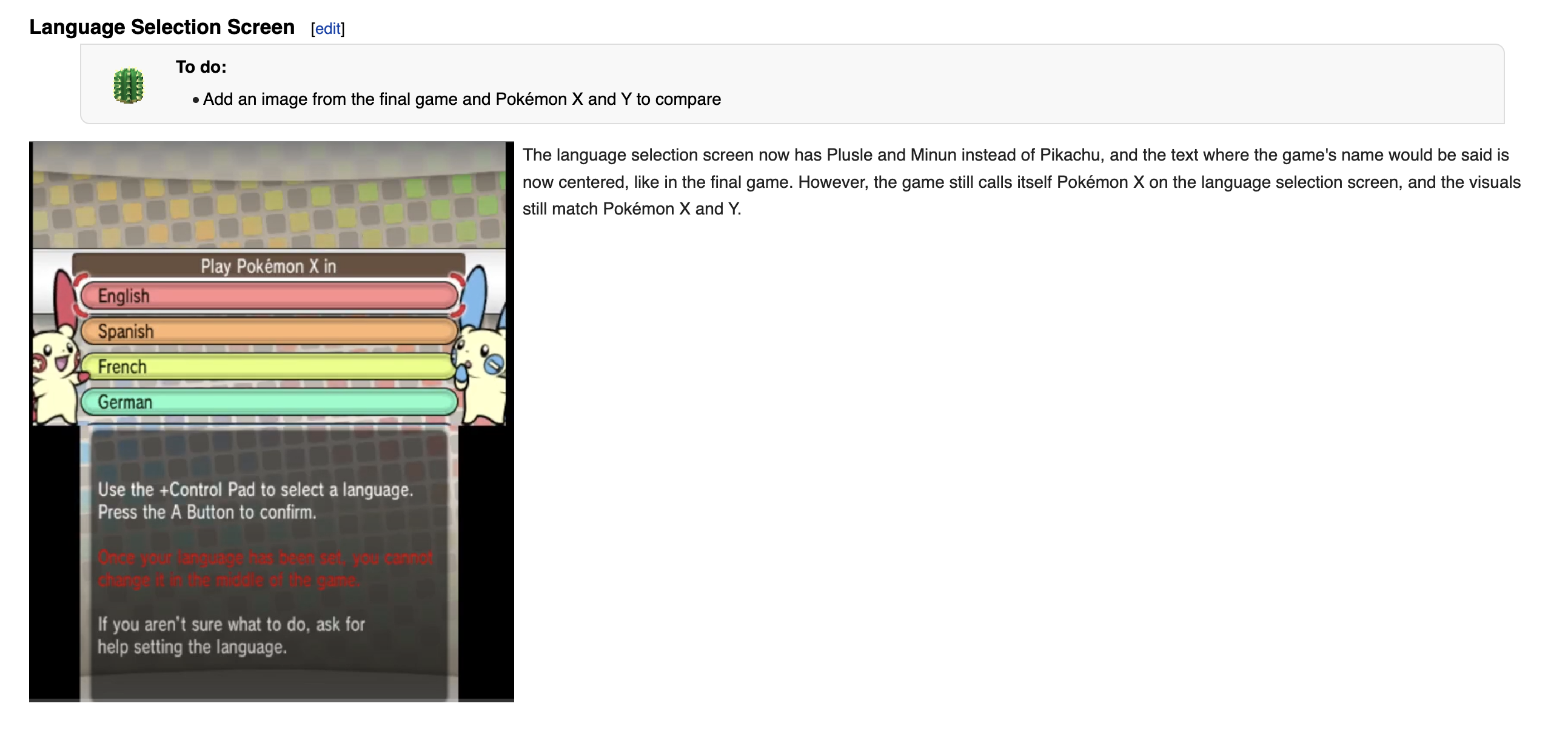 Can anyone here send a screenshot of the final version of the Pokémon X language selection screen, as well as the final version of the Pokémon OR language selection screen, and check if it's on TCRF? I need it for this: