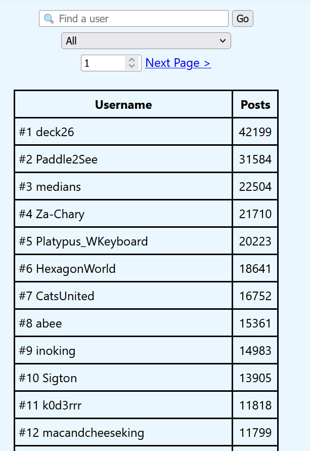 please add one link to GET someone’s exact post countThat would be very challenging, as I would have to scrape every forum post.