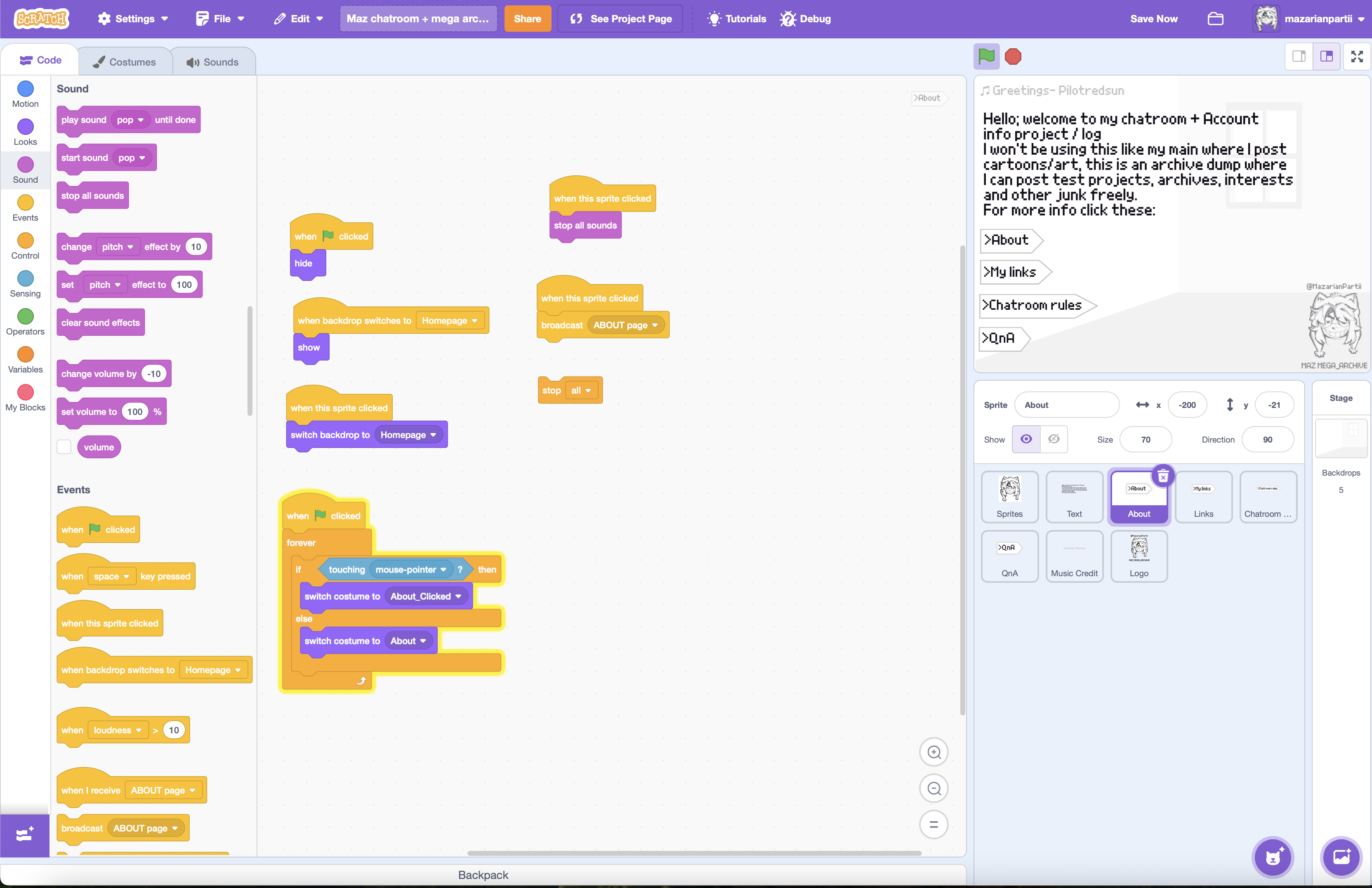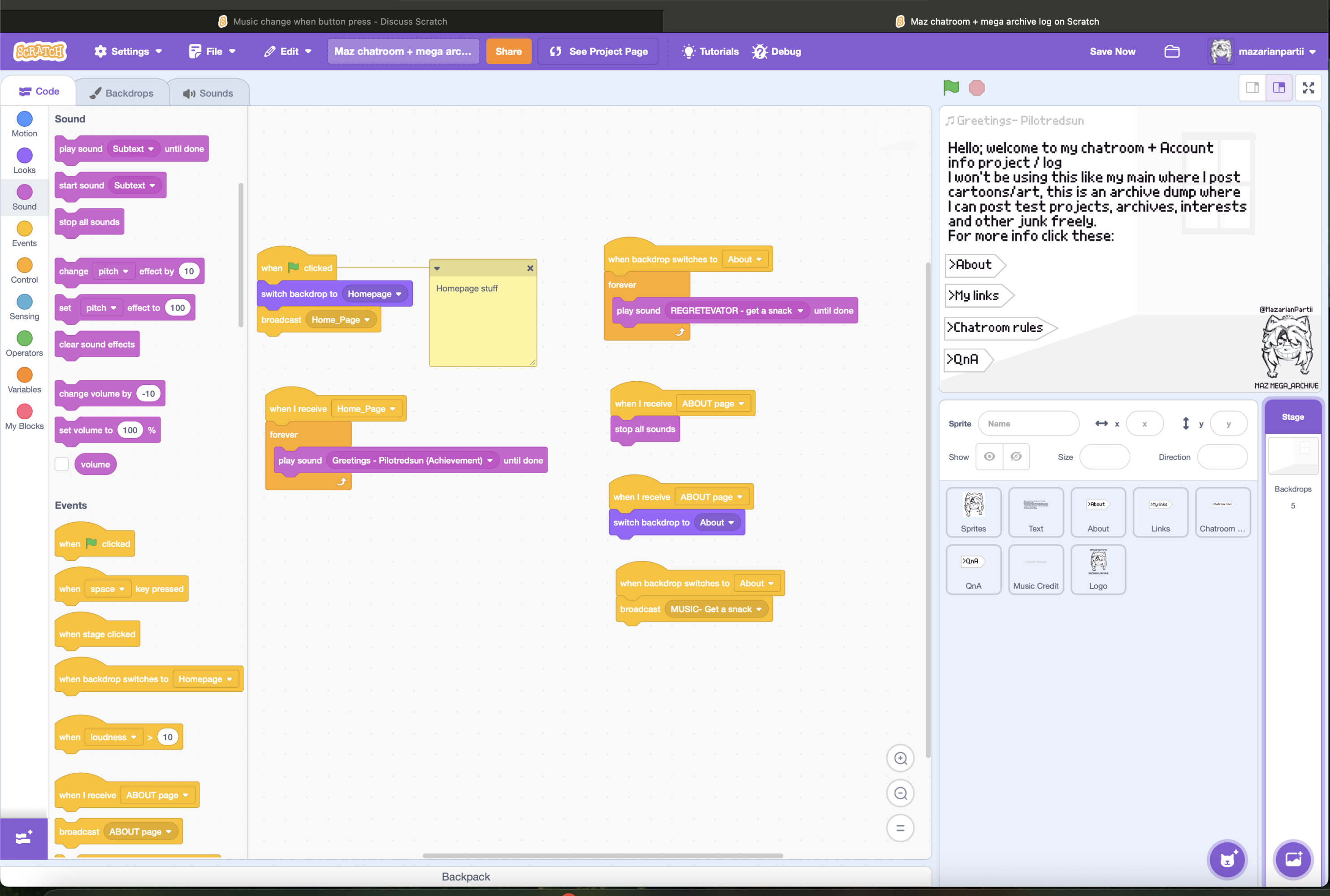 Hey, I'm making a project thats basically a website thing, it has 4 buttons on the main page and when you click them it redirects to a different page. One feature ive been tinkering with is music in the background, the Homepage has music A, the current page Im working (about) on has music B. one of my current issues is that when a different site is clicked, its supposed to loop a ne song, but the 2 songs with homepage overlap. The way the code works is that when you click the button, it broadcasts the page's event, which switches backdrop to the pages backdrop, stops all music and loops the new one, but it isn't working, and I cant find any video that explains how to code this. please help?