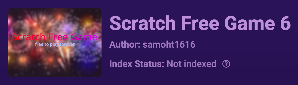 J'imagine que c'est lié à un site externe à Scratch ? Si c'est le cas, la question aurait du être posée ici, ici ou directement aux développeurs du site.il est aussi lié à scratch, car s'il est non-indexer, il n'apparait pas dans les tendances (même si elles ne fonctionnent qu'à moitié) et les recherches déjà un topic dessus : https://scratch.mit.edu/discuss/topic/850591/